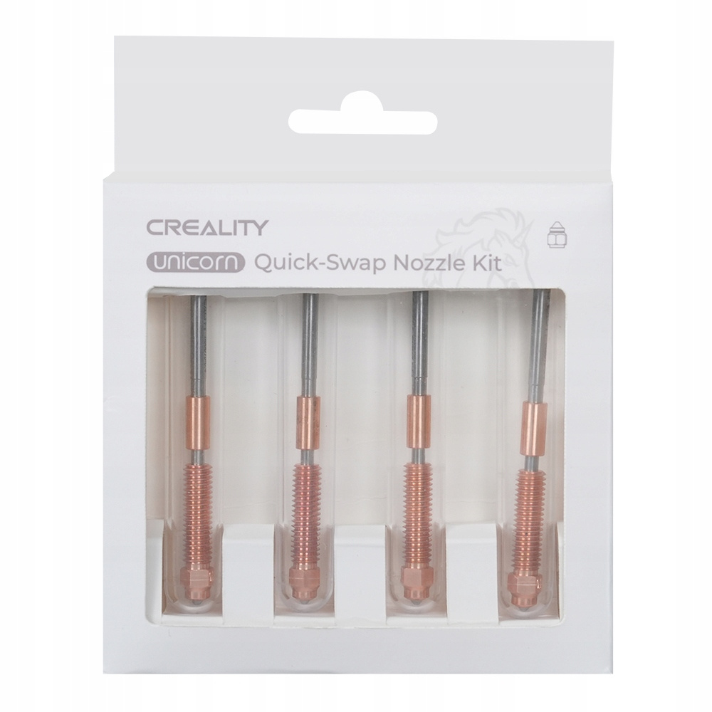 Odpowiednie dla drukarek K2 PLUS Oryginalne dysze Creality® z systemem szybkiej wymiany UNICORN obsługujące szybkość druku do 600 mm/s Informacje podstawowe:
