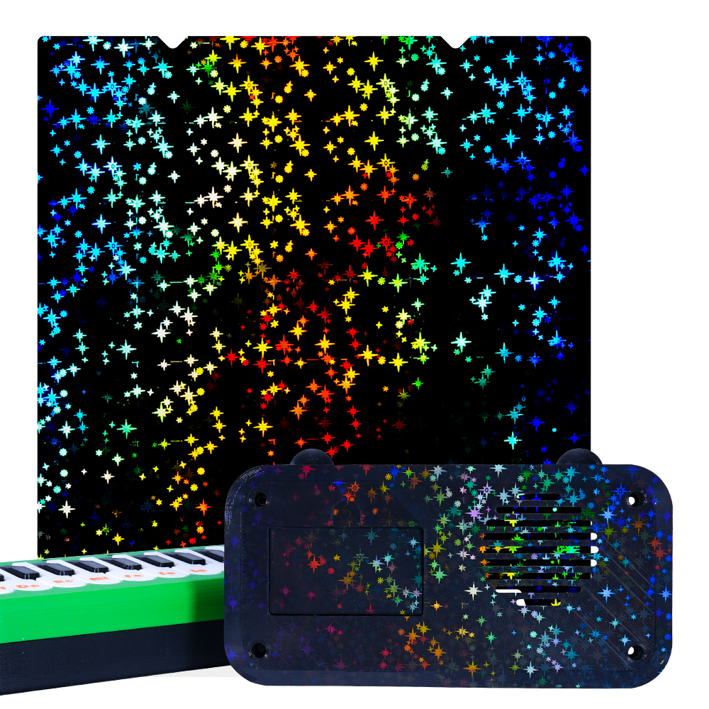 Podkładka PET: Warstaw o unikatowej strukturze "Stars" wytrzymuje do 80 ° C i pozwala uzyskać unikalny i nowatorski wzór na spodzie wydruku. Rekomendowana jest do filamentów PLA, TPU i PETG.